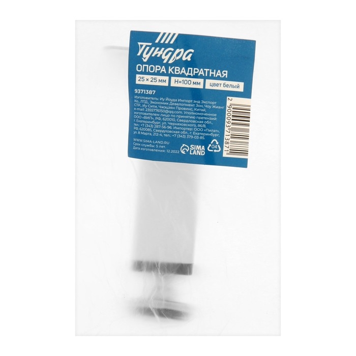 Опора квадратная OKV001WH ТУНДРА, d=25х25 мм, H=100 мм, цвет белый