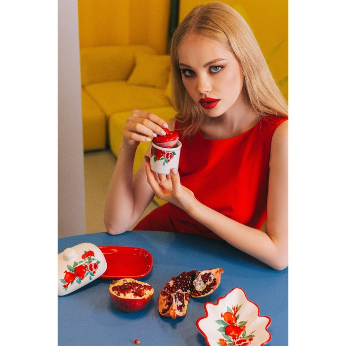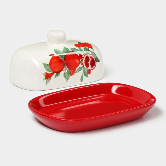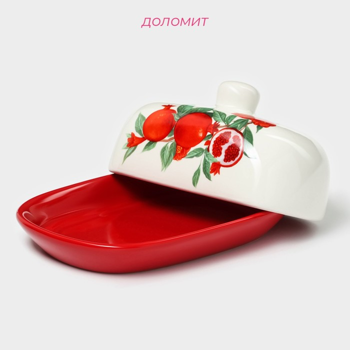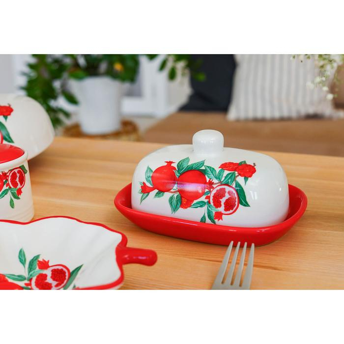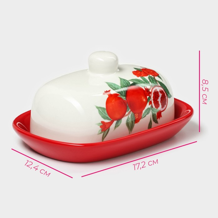 Маслёнка Доляна «Гранат», 17,2×12,4×8,5 см, цвет красный и белый