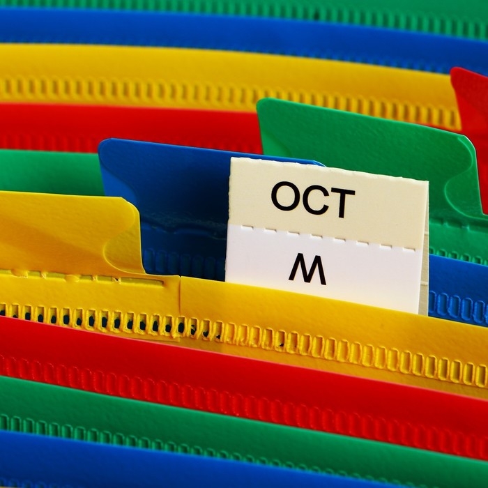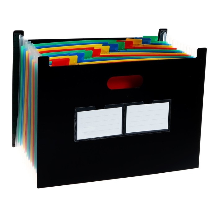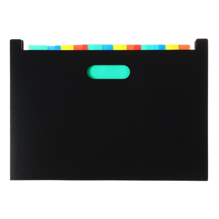 Папка 12 отделений, А4, с цветными разделителями, черная