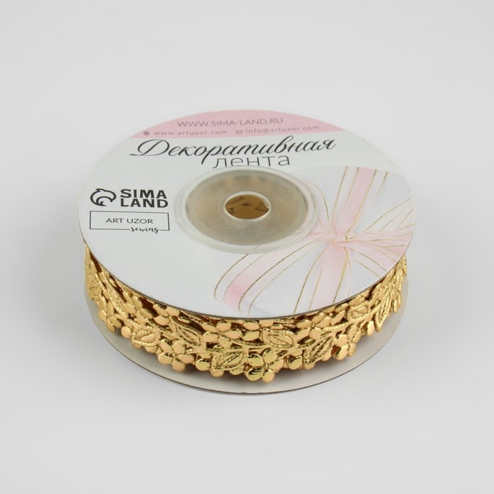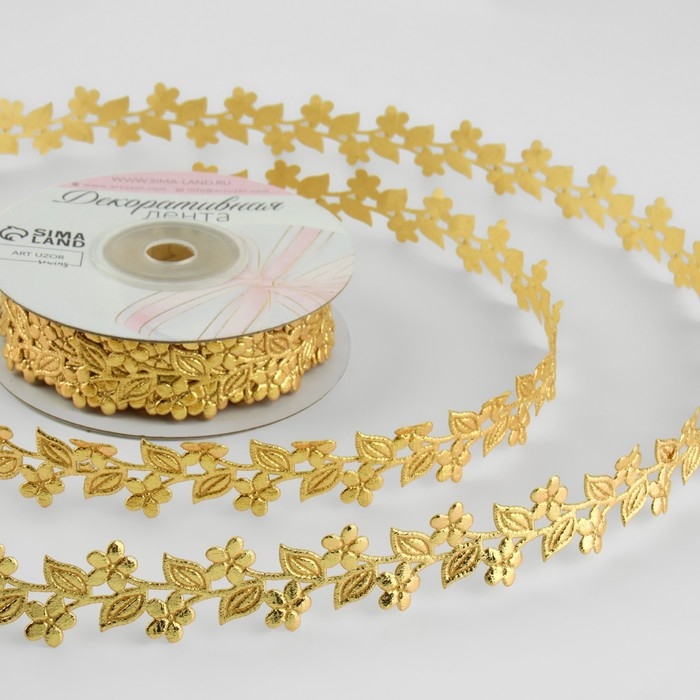 Лента фигурная «Ветви с цветами», 20 мм, 9 ± 0,5 м, цвет золотой