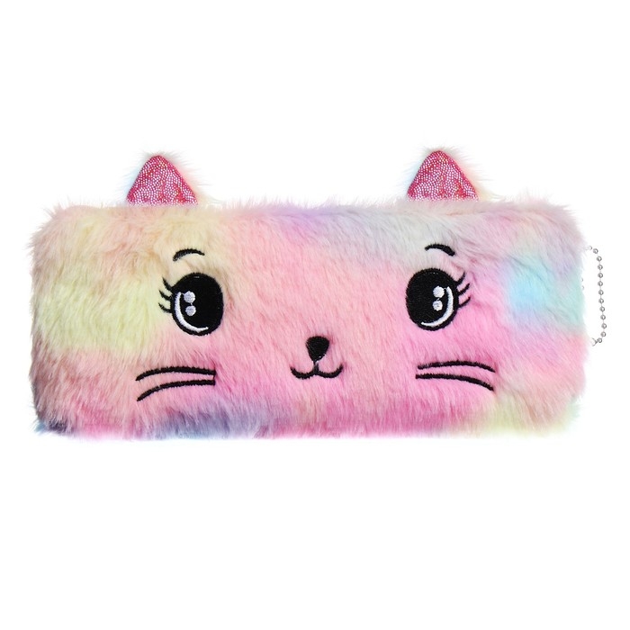Пенал школьный меховой на молнии Calligrata "Кошечка", микс