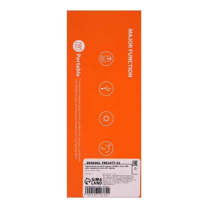 Портативная колонка Luazon LZZ-62, 10 Вт, 800 мАч, подсветка, micro SD, чёрная