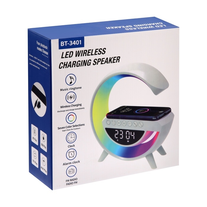 Портативная колонка- ночник BT3401, 5 Вт колонка, 15 W зарядка, 1200 мАч, подсветка, белая