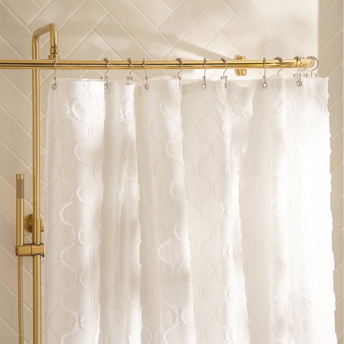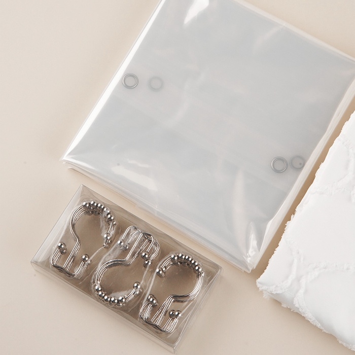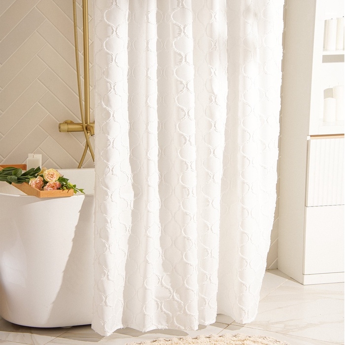 Изготовленная из высококачественного полиэстера, эта штора не только выглядит привлекательно, но и отличается высокой износостойкостью. Люверсы обеспечивают простоту установки и надежное крепление, что позволяет вам быстро и без труда обновить облик ванной комнаты.