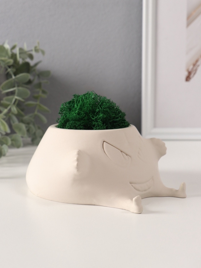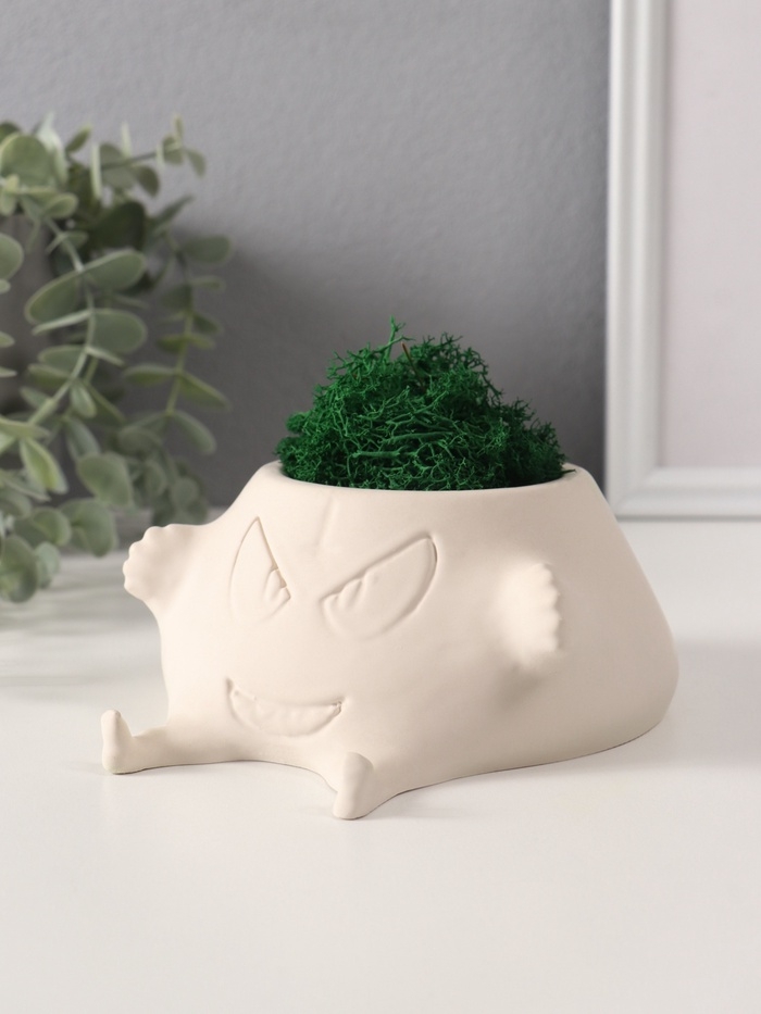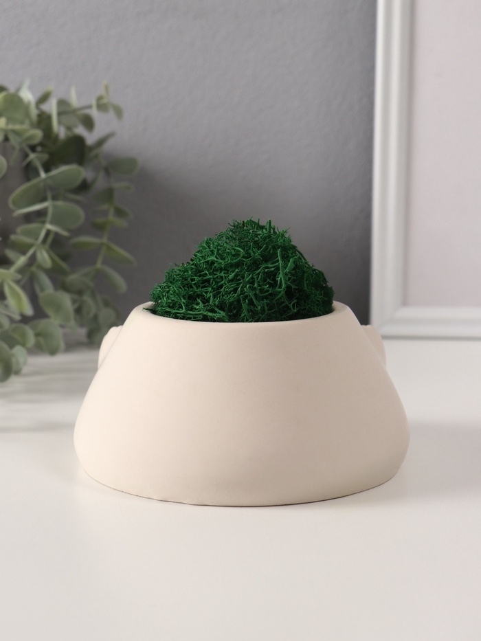 Кашпо бетонное "Злобный смех" со мхом 15,5*12,5*6 см белый (мох зеленый стабилизирован)
