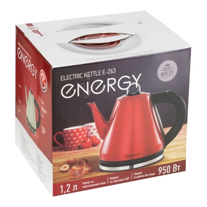Чайник электрический, ENERGY E-263, металл, 1,2 л, 950 Вт, красный