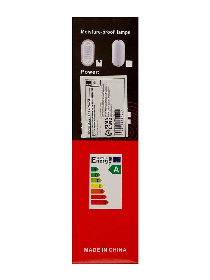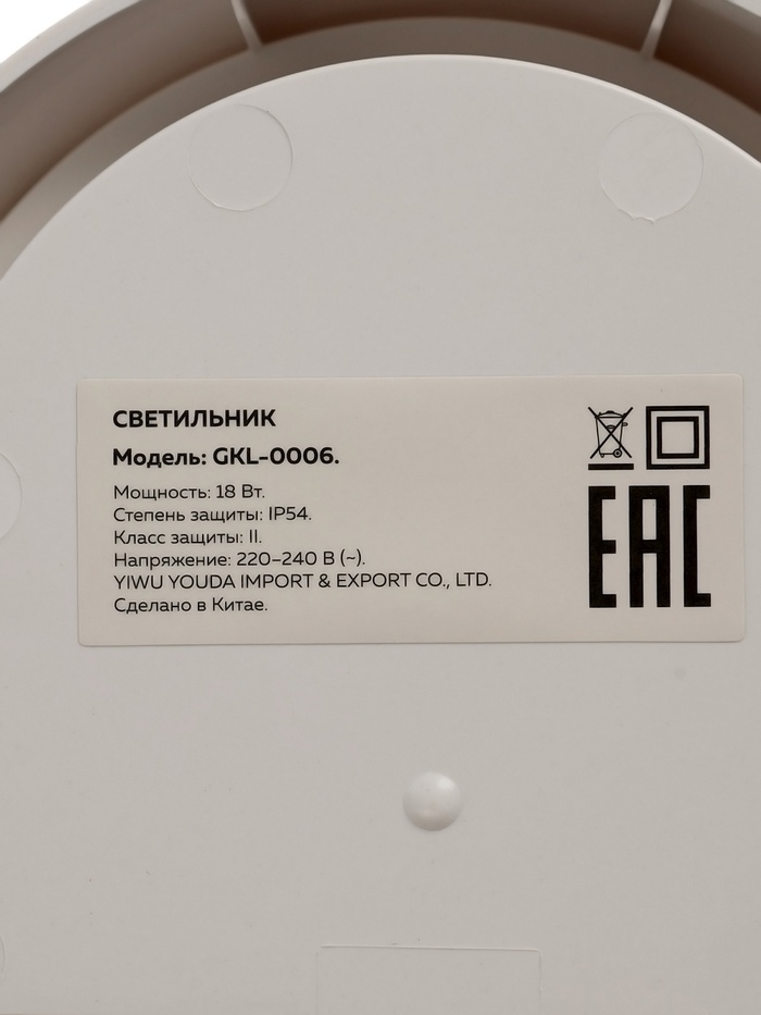 Светильник светодиодный, 18 Вт, IP54, 6500К, 220 В, овал, белый