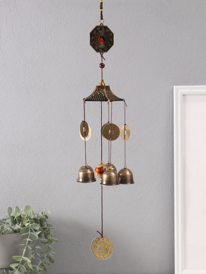 Музыка ветра металл от сглаза "Инь-Ян" 5 колокольчиков h=60см
