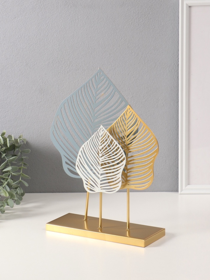 Сувенир металл "Листья Монстеры" синий 8х25х31 см