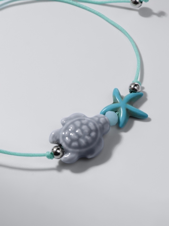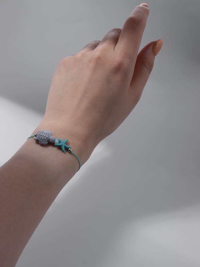 Браслет ассорти на нити «Черепашка» звезда, серый в серебре