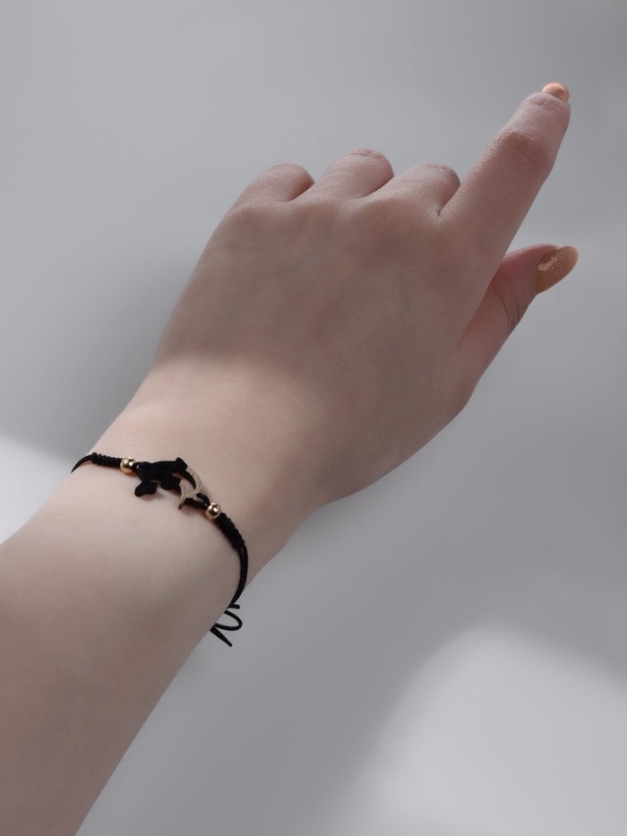 Браслет ассорти на нити «Дельфинчик» на нити, цвет чёрный в золоте