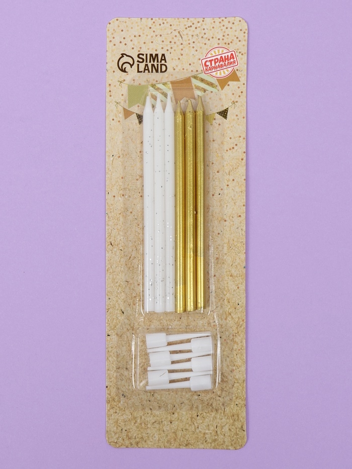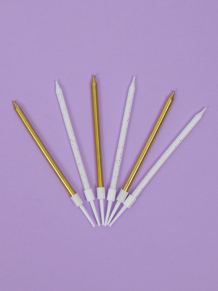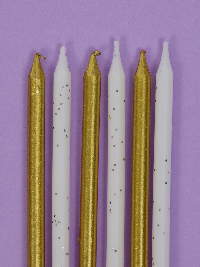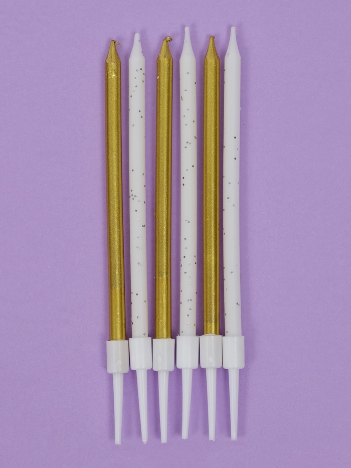 Свечи для торта "Блестящая вечеринка", 6 шт, белый, золотой и белый