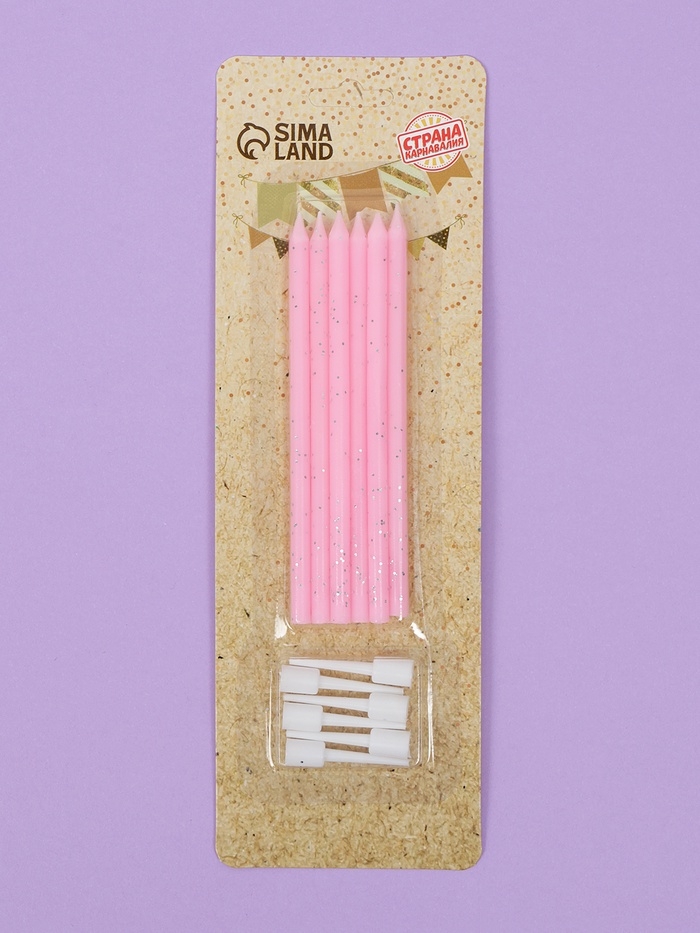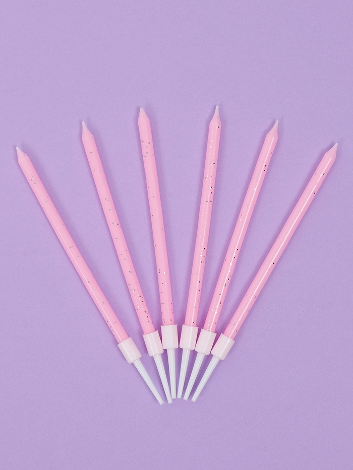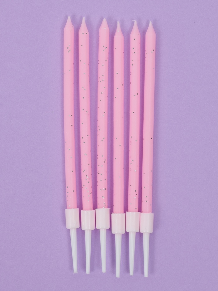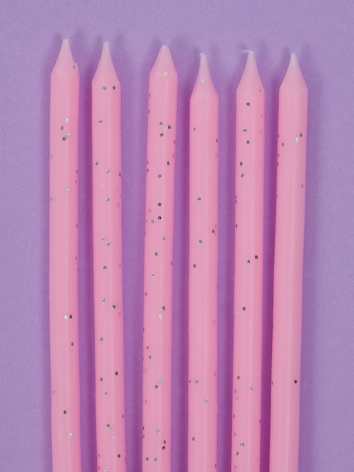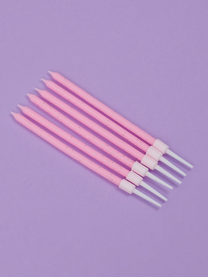 Свечи для торта "Розовая вечеринка", 6 шт, блестящие розовые
