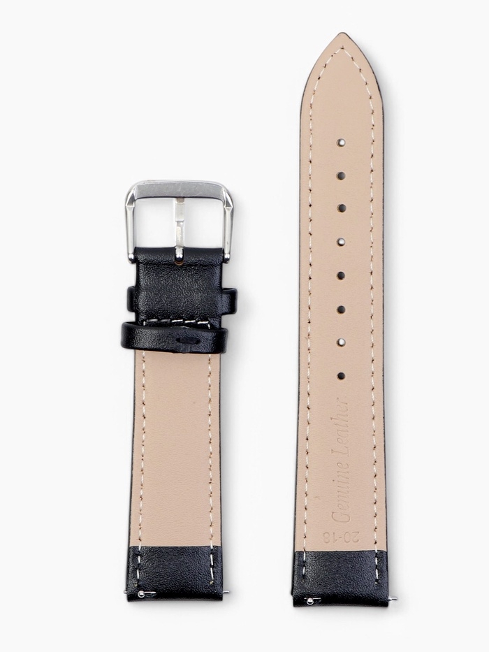 Ремешок для часов кожаный с быстросъемными шпильками, 20 мм, l-20 см, черный