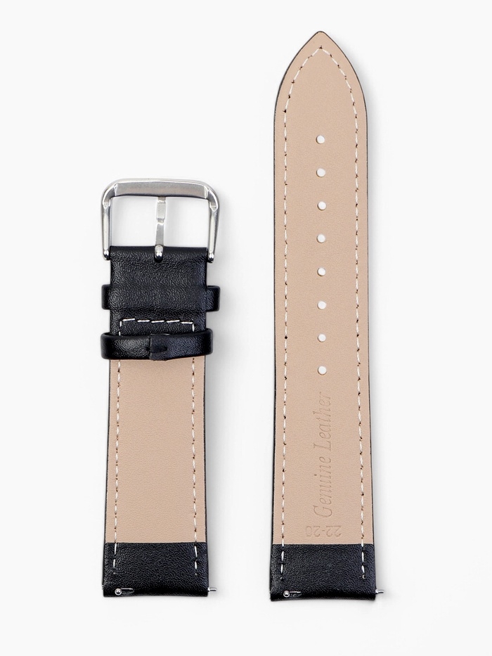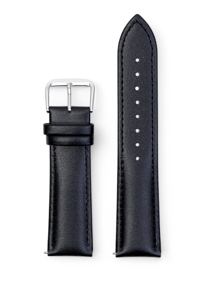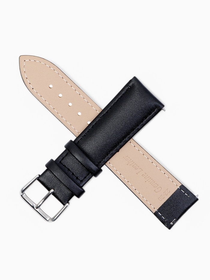 Ремешок для часов кожаный с быстросъемными шпильками, 22 мм, l-20 см, черный
