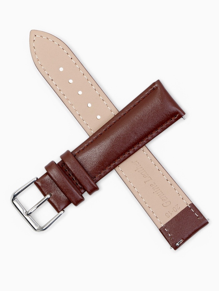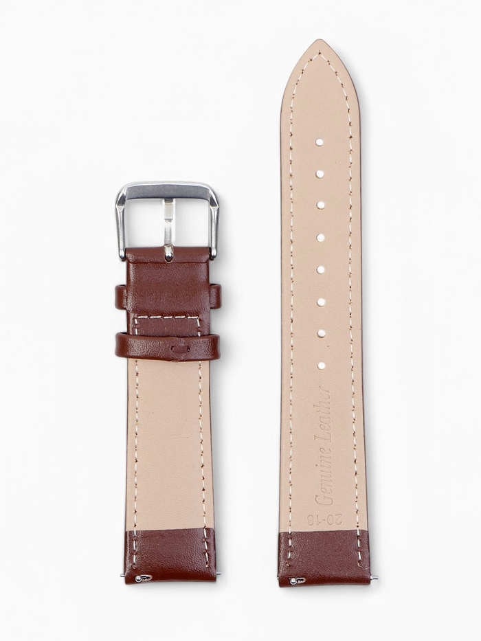 Ремешок для часов кожаный с быстросъемными шпильками, 20 мм, l-20 см, коричневый