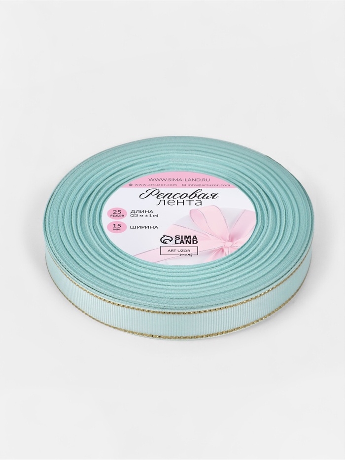 Лента репсовая 15мм*25±1ярд(23м±1м) золотые нити №013 светло-голубой АУ