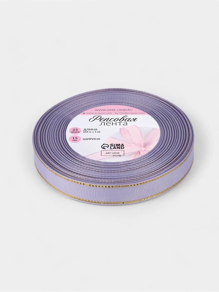 Лента репсовая 15мм*25±1ярд(23м±1м) золотые нити №021 сиреневый АУ