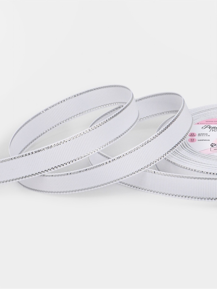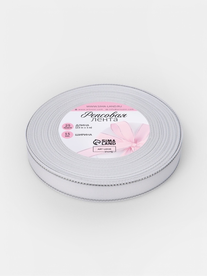 Лента репсовая 15мм*25±1ярд(23м±1м) серебряный нити №001 белый АУ