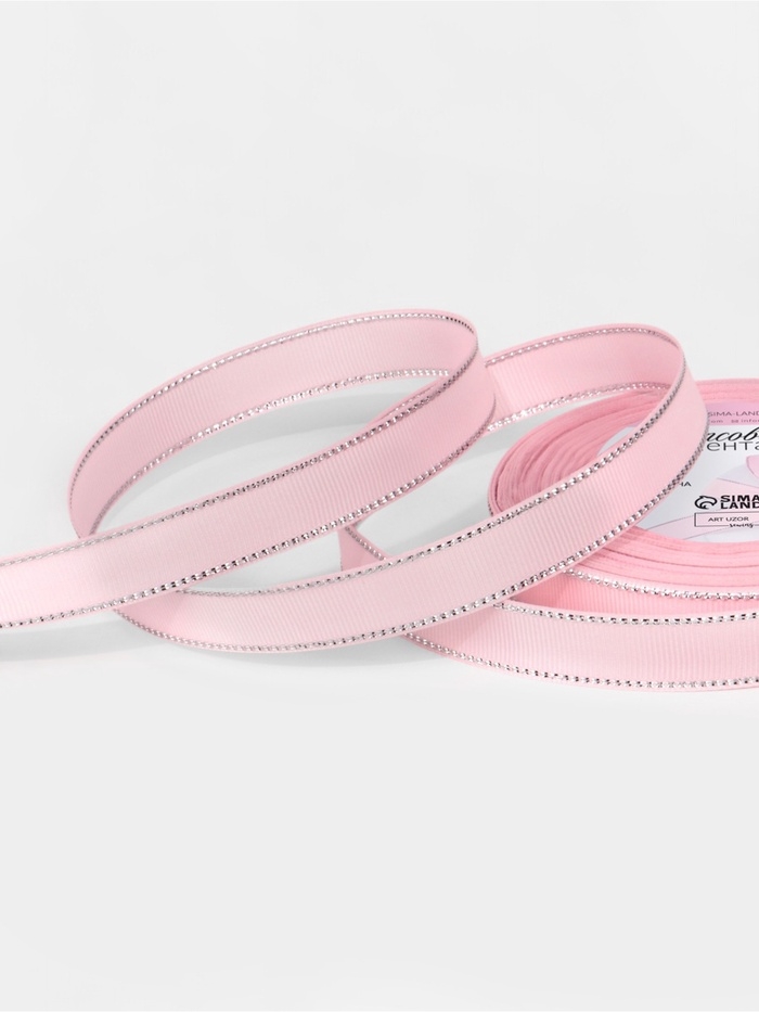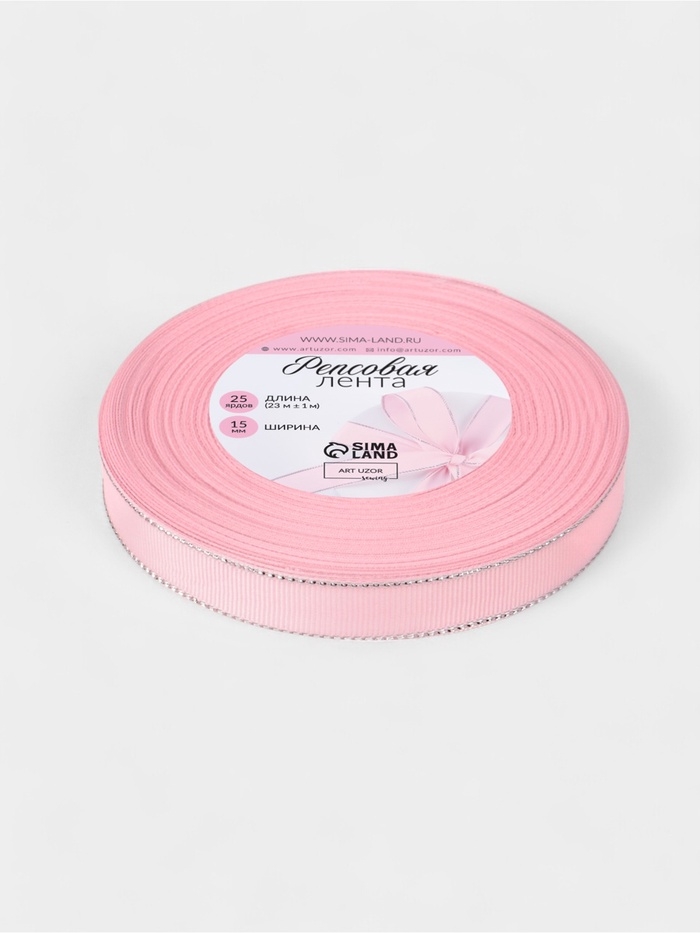 Лента репсовая 15мм*25±1ярд(23м±1м) серебряный нити №004 светло-розовый АУ