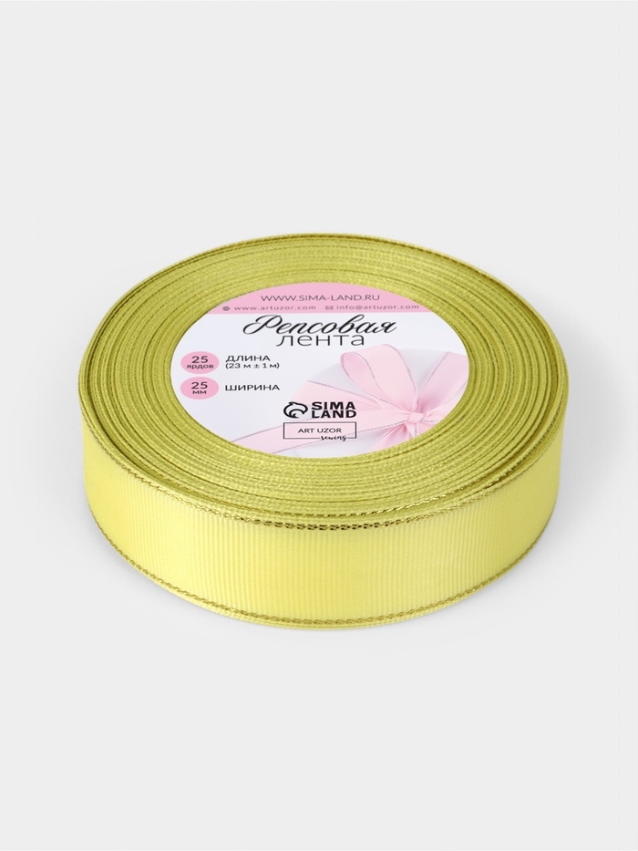 Лента репсовая 25мм*25±1ярд(23м±1м) золотые нити №015 жёлтый АУ