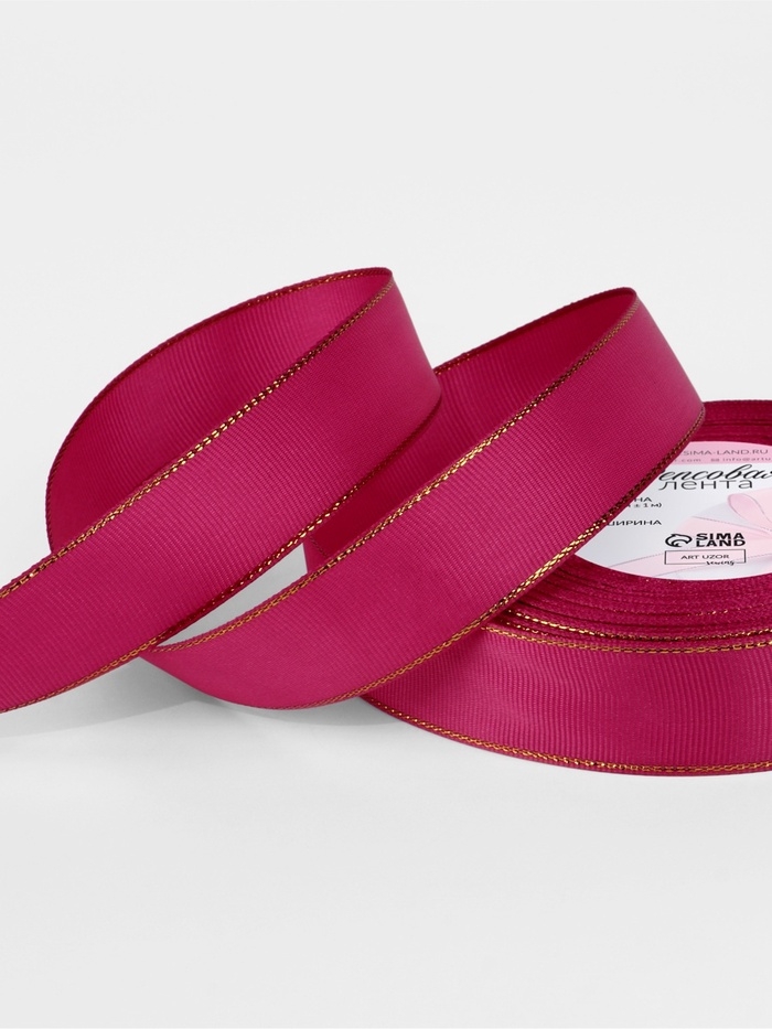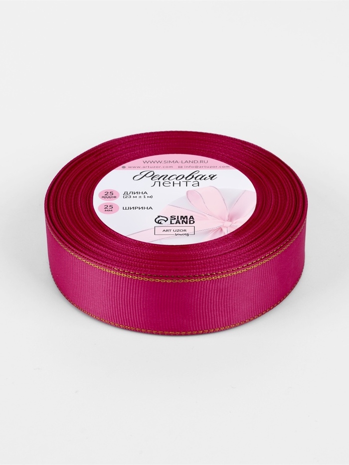 Лента репсовая 25мм*25±1ярд(23м±1м) золотые нити №028 ярко-розовый АУ