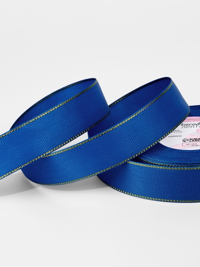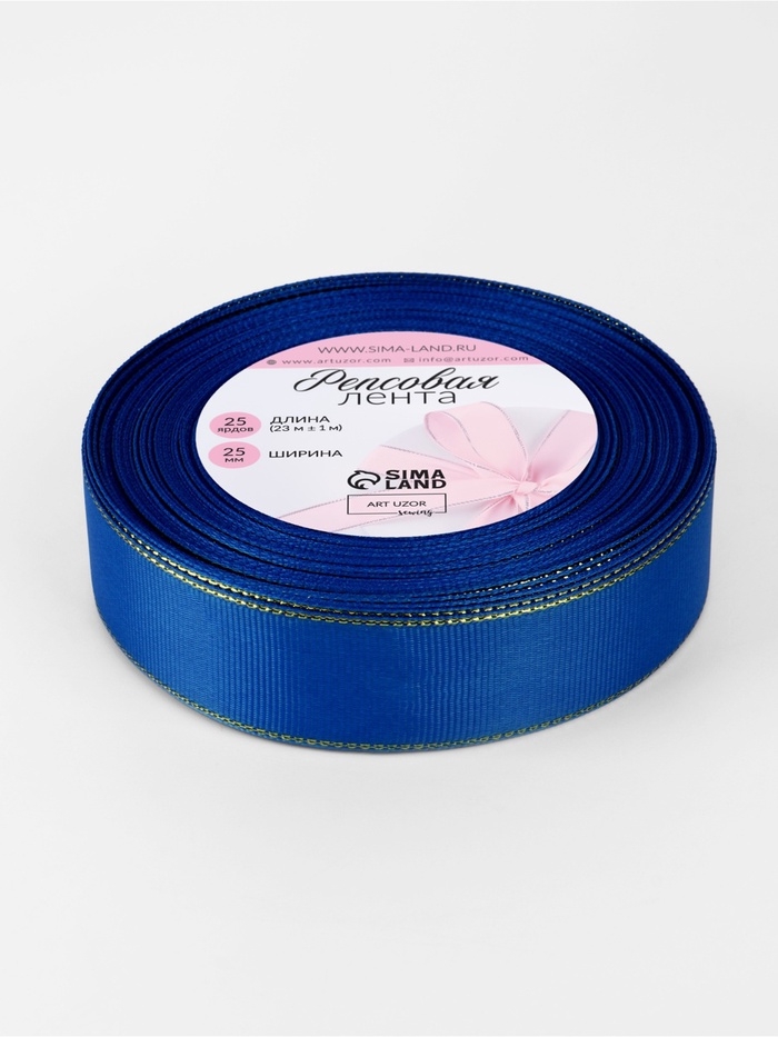 Лента репсовая 25мм*25±1ярд(23м±1м) золотые нити №040 синий АУ