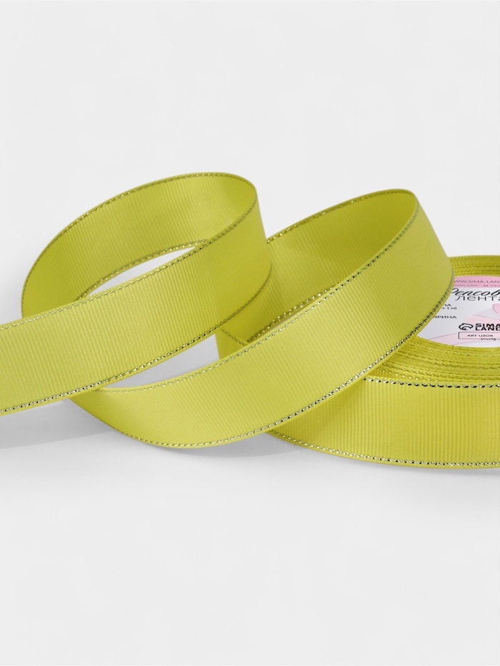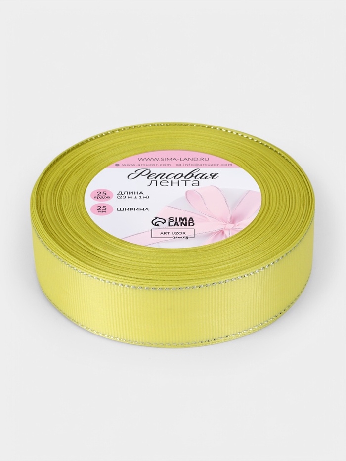 Лента репсовая 25мм*25±1ярд(23м±1м) серебряные нити №015 жёлтый АУ