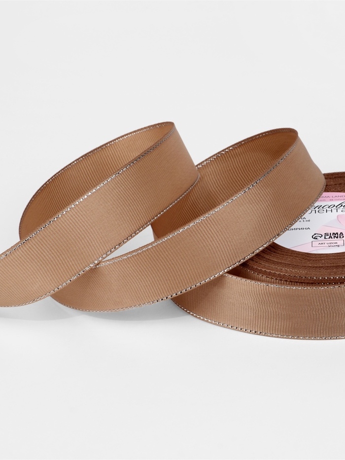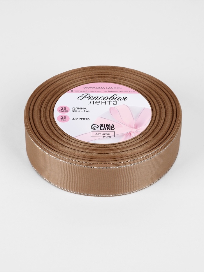 Лента репсовая 25мм*25±1ярд(23м±1м) серебряные нити №173 бежевый АУ