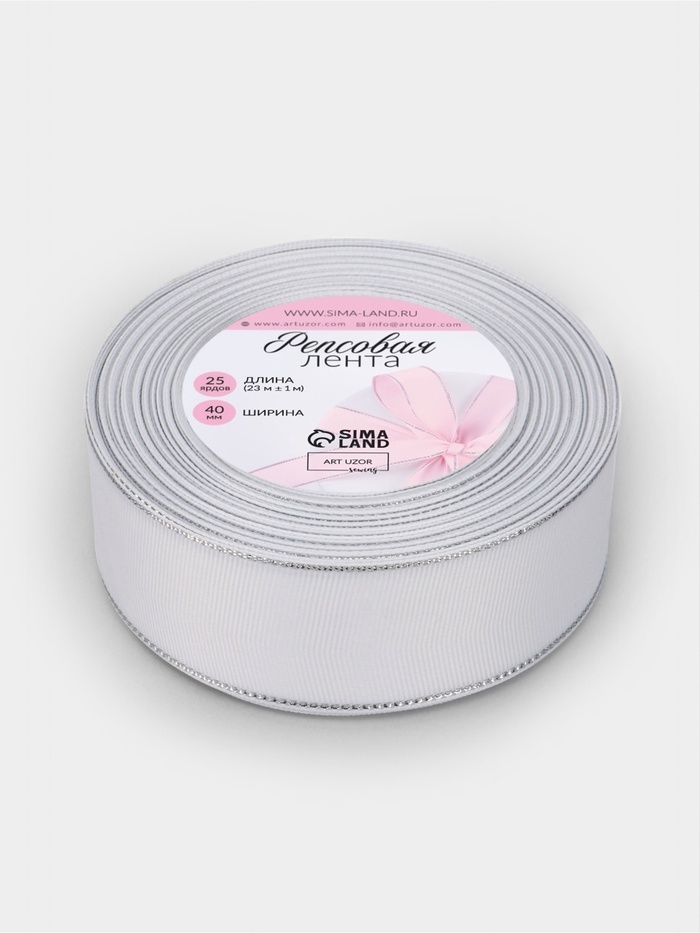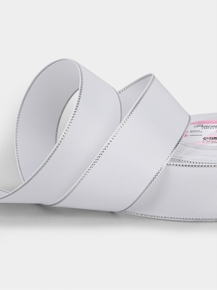 Лента репсовая 40мм*25±1ярд(23м±1м) серебряные нити №001 белый АУ