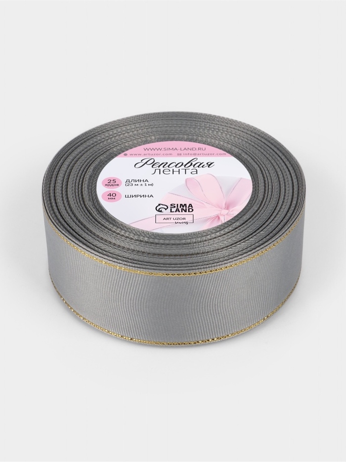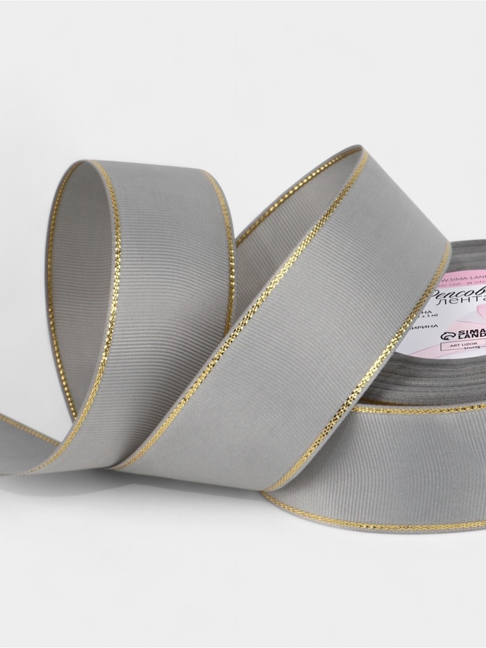 Лента репсовая 40мм*25±1ярд(23м±1м) золотые нити №003 светло-серый АУ