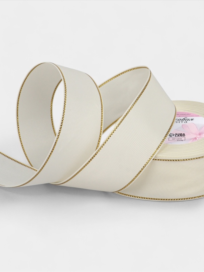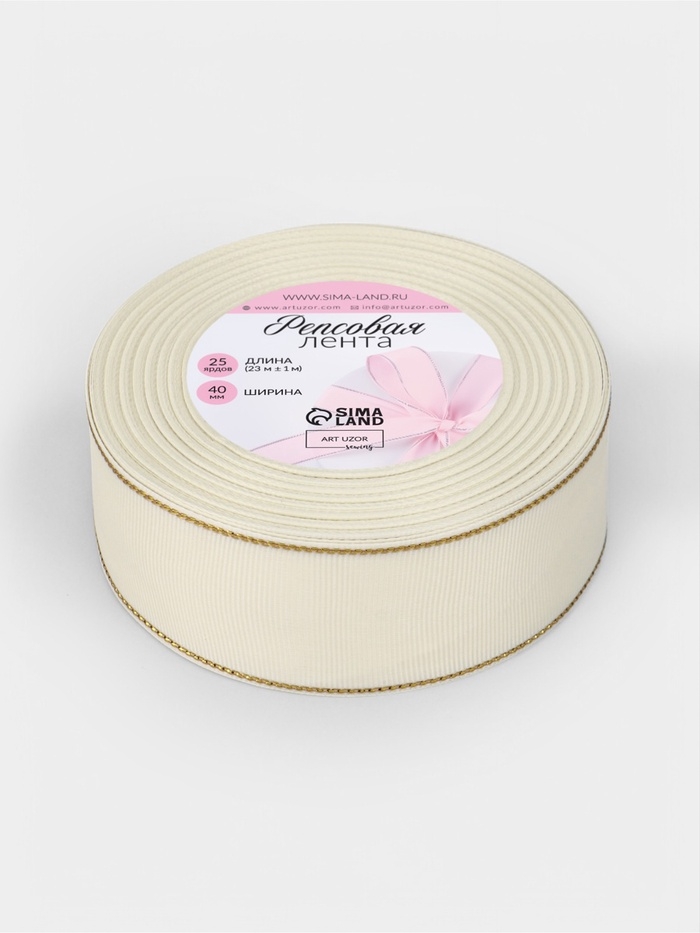 Лента репсовая 40мм*25±1ярд(23м±1м) золотые нити №008 молочный АУ