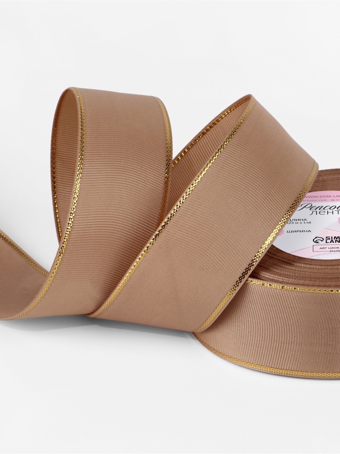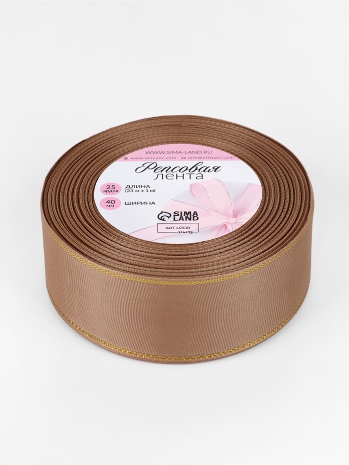 Лента репсовая 40мм*25±1ярд(23м±1м) золотые нити №173 бежевый АУ