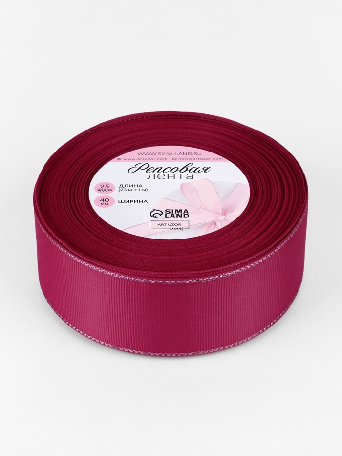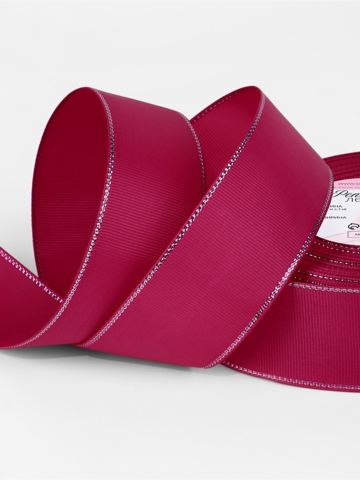 Лента репсовая 40мм*25±1ярд(23м±1м) серебряные нити №028 ярко-розовый АУ