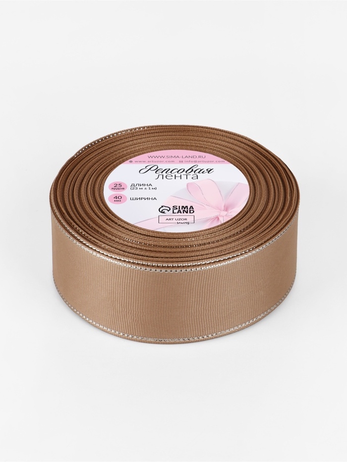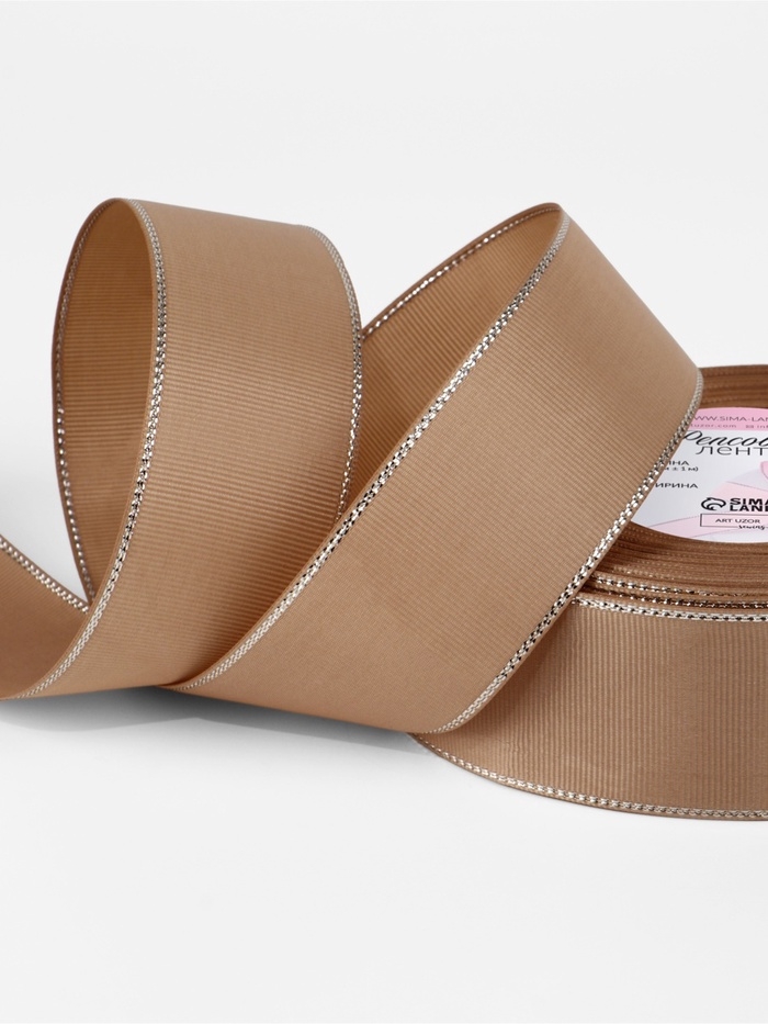 Лента репсовая 40мм*25±1ярд(23м±1м) серебряные нити №173 бежевый АУ