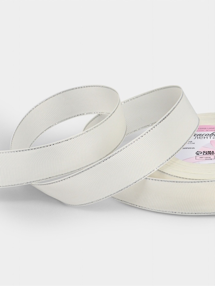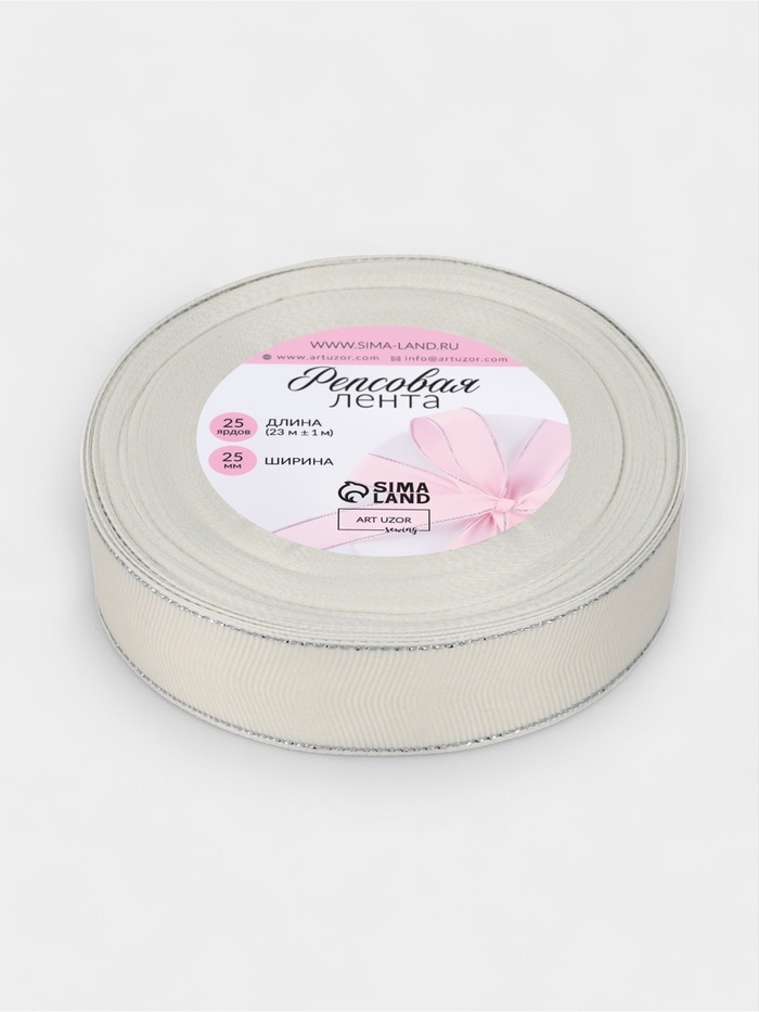 Лента репсовая 25мм*25±1ярд(23м±1м) серебряные нити №008 молочный АУ