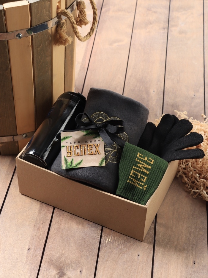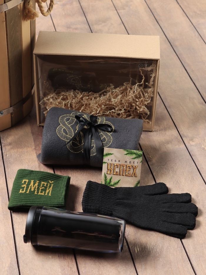 Набор подарочный мужской плед, носки, перчатки, термостакан