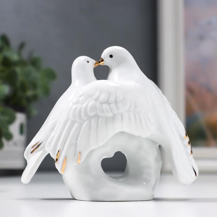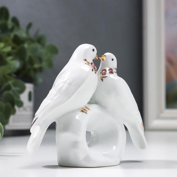 Фигурка керамика под фарфор «Белые голуби», стразы, 11.7×6×12.3 см