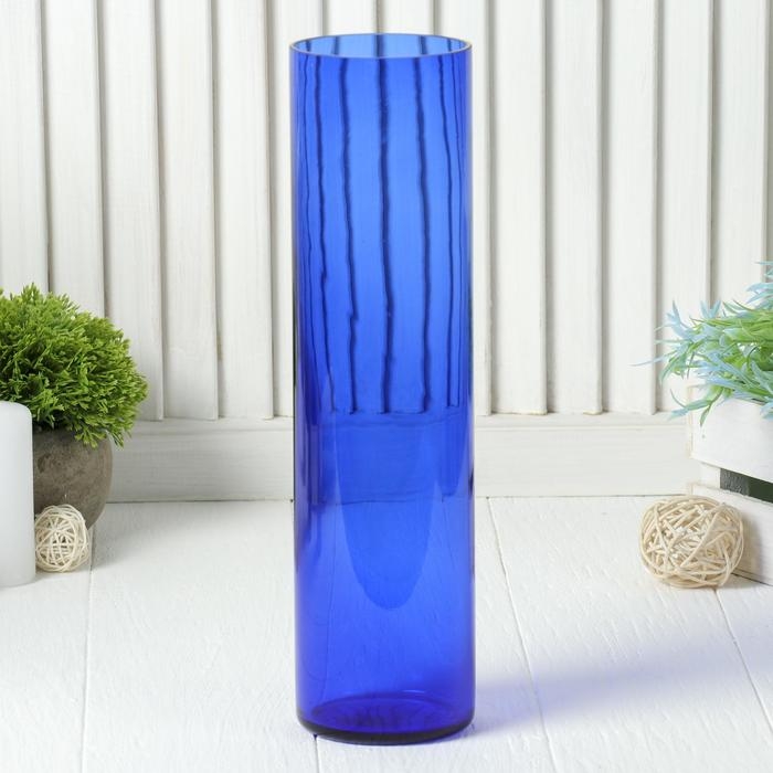 Ваза "Цилиндр" d 80*h 300 мм. из синего стекла (без декора)