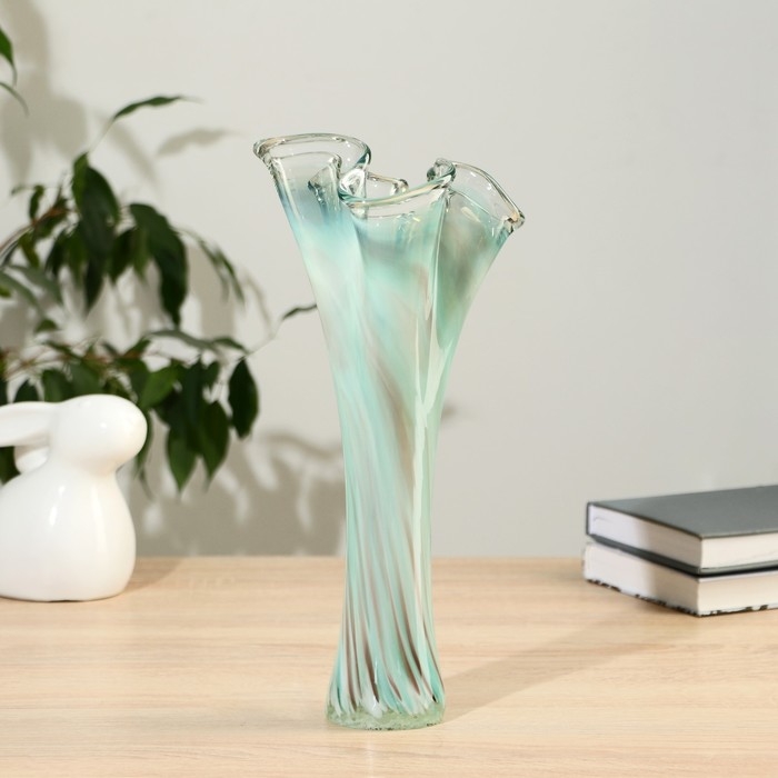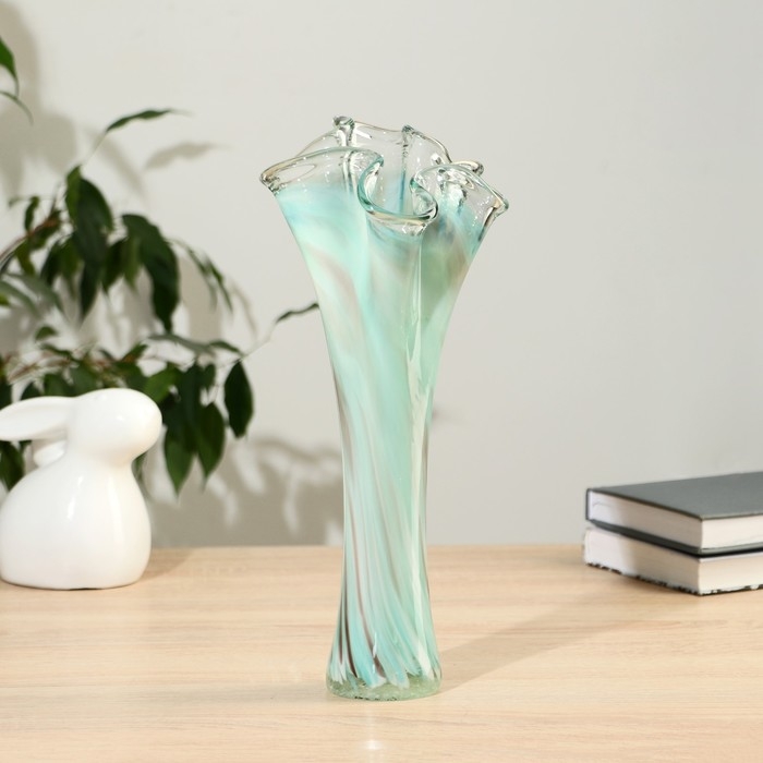 Ваза "Волна" 28 см, зелёно-марганцевая