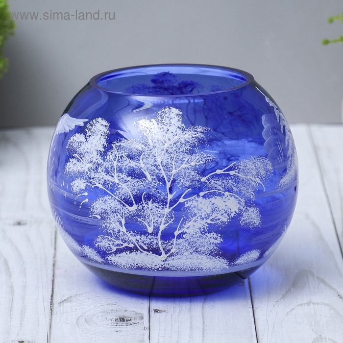 Ваза "Шар" d-135, h-110 мм. 1,2л из синего стекла (ручная роспись) рис. № 5 (Бел.)