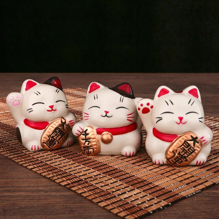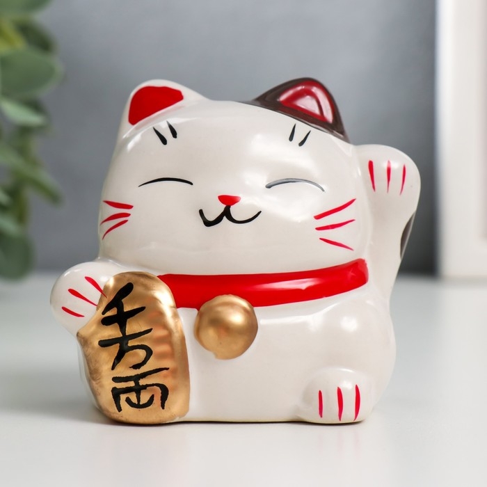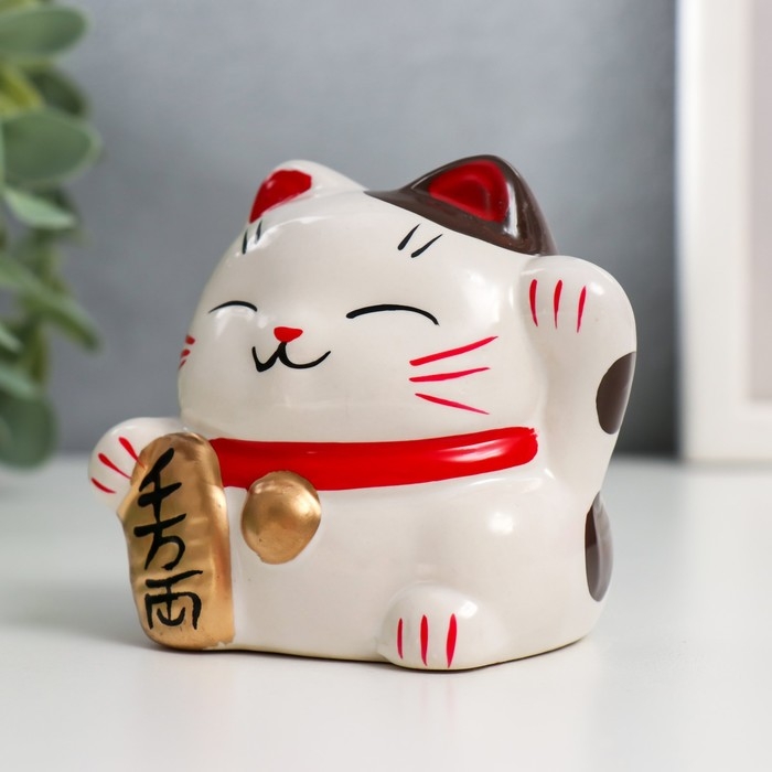 Копилка керамика "Манэки-нэко с пожеланием" МИКС 6х7х7,5 см