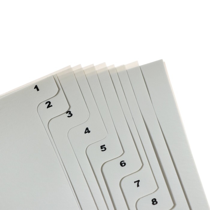 Разделители помогут Вам комфортно сортировать, архивировать и систематизировать любые документы внутри папок разного вида. Они выполнены из прочного пластика и имеют универсальную перфорацию для подшивки в папки.