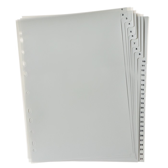 Набор разделителей листов А4 Office-2000, цифровой 1-31, серые, пластик 120 мкм