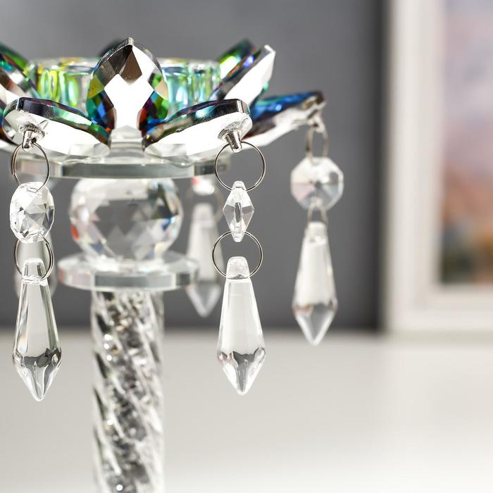 Подсвечник стекло на 1 свечу "Лотос на пьедестале" зелень голография 22,3х10,5х10,5 см