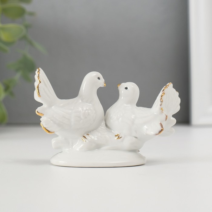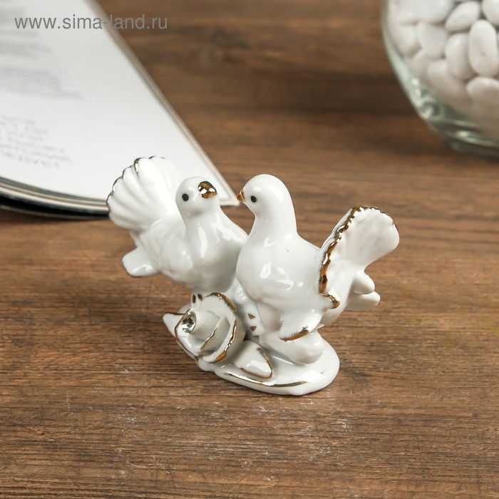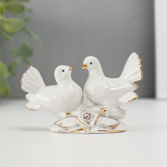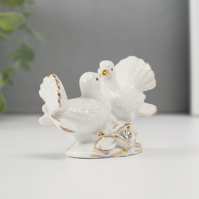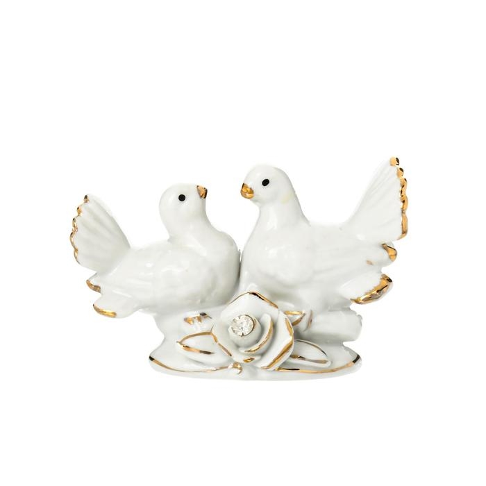 Сувенир керамика "Голубки с розой" белый, страза 5,8х8,7х4,2 см