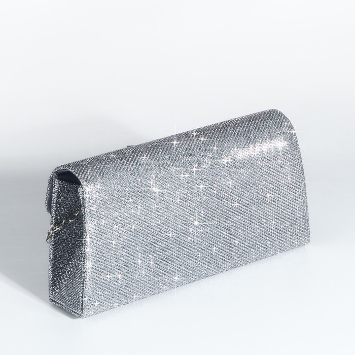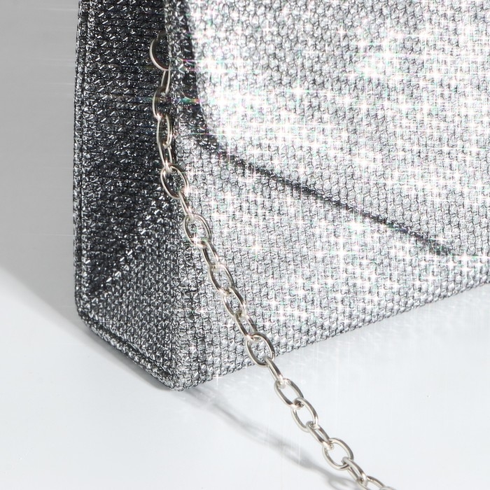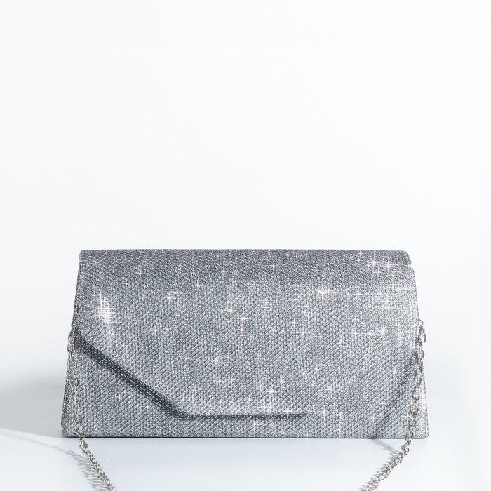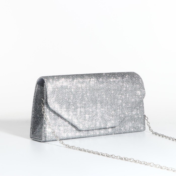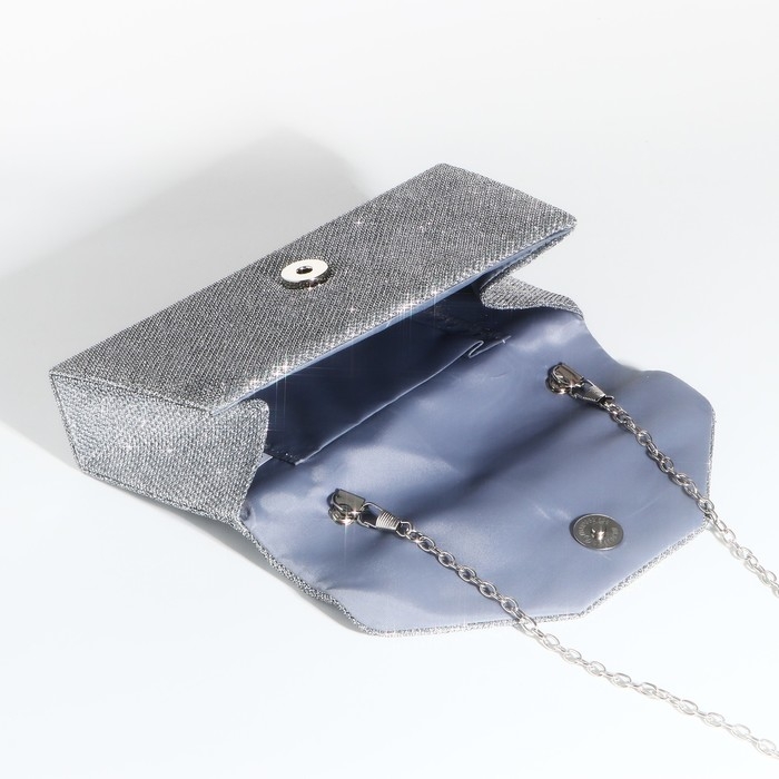 Сумка-клатч на магните, длинная цепь, цвет серебристый