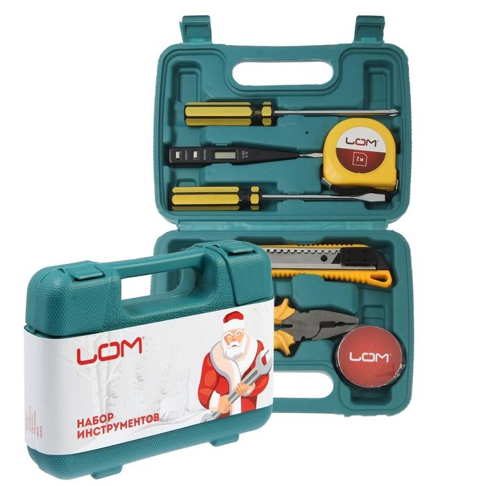 Набор инструментов в кейсе ЛОМ, в подарочной упаковке "НОВЫЙ ГОД", 7 предметов