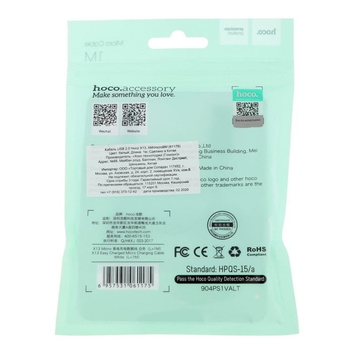 Кабель Hoco X13, microUSB - USB, 2,4 А, 1 м, PVC оплетка, белый