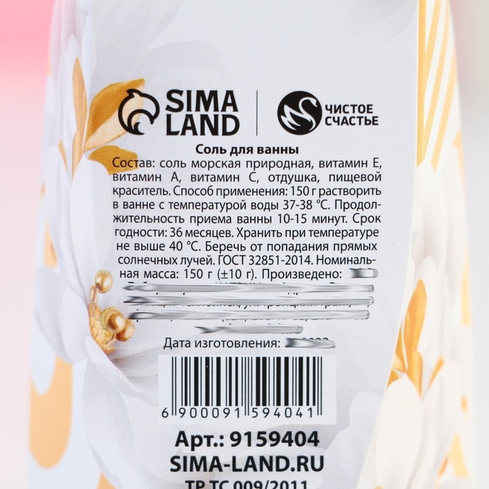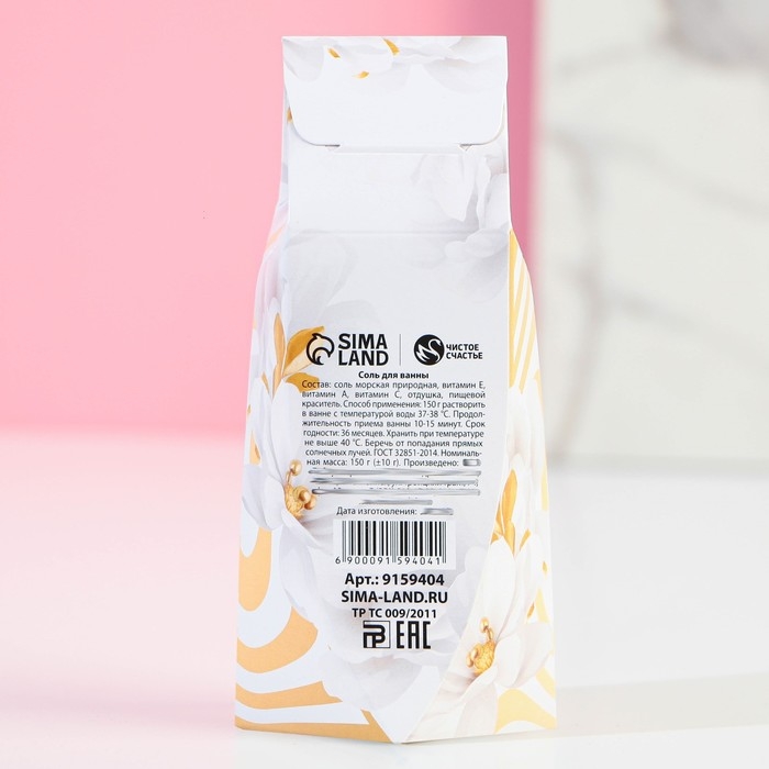 Соль для ванны ЧИСТОЕ СЧАСТЬЕ «8 Марта», 150 г, аромат ванильного молока